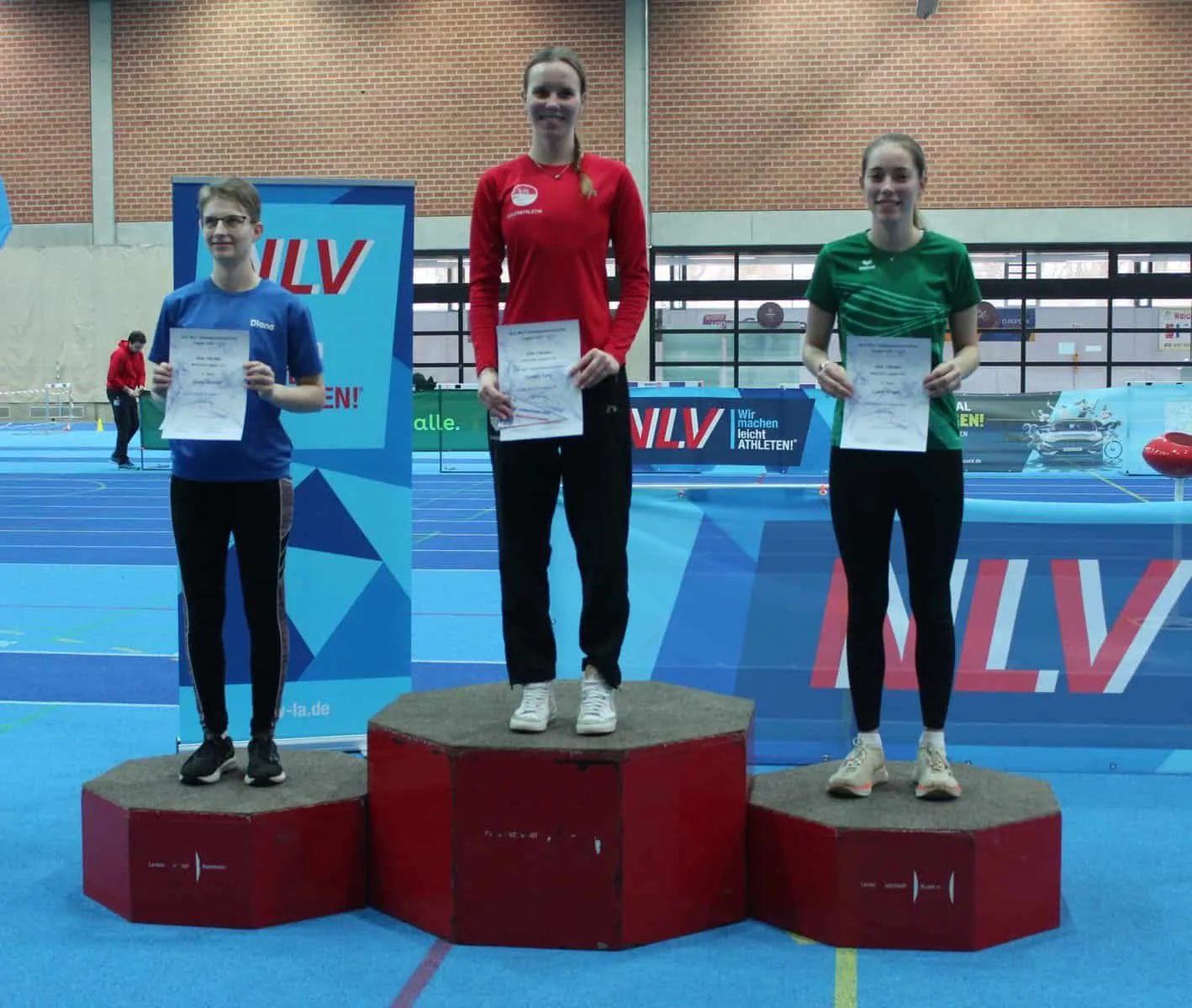 Aus 6 mach 4 – mit Svenja Schmees (6m Hürd. U20) und Janne Heyers (60m W14) hatten wir leider 2 krankheitsbedingte Ausfälle bei der Hallen-LM der U16 und U20 in Hannover am 8./9.2. in Hannover.