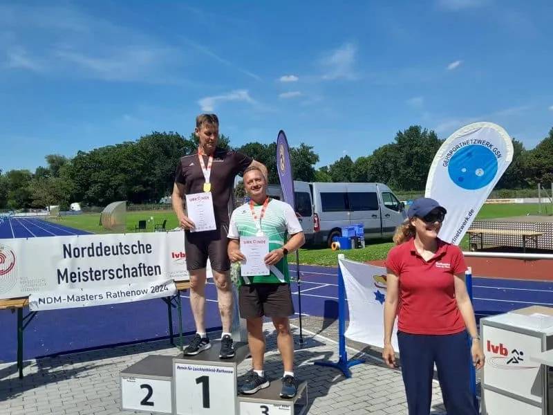 Weite Fahrten standen an diesem Wochenende an. Fast durch die ganze Republik mussten dabei unsere Senioren Andreas Obermüller (M50) und Rainer Werking (M65) bis nach Erdigen bei München. Rainer ist aus dem Rheinland nach Papenburg gezogen, startet daher noch vor den VFB Polch und ab 2025 dann für die LG. Er ist bereits zigfacher Deutscher Seniorenmeister im Kugelstoßen und verpasste leicht angeschlagen den nächsten Titel mit 12,48 m nur um ganze 8 cm.