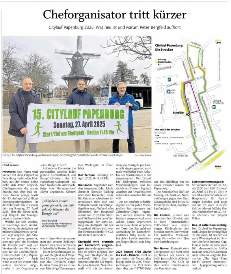 Des weiteren wurde auf die Neuerungen des diesjährigen Citylaufes eingegangen: Citylauf Papenburg 2025: Was neu ist und warum Peter Bergfeld aufhört.