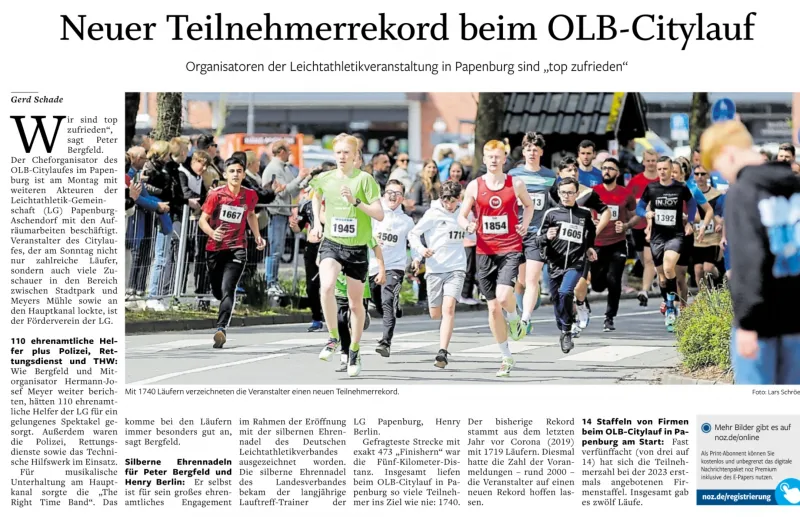 Neuer Teilnehmerrekord beim OLB-Citylauf (EMS-Zeitung)