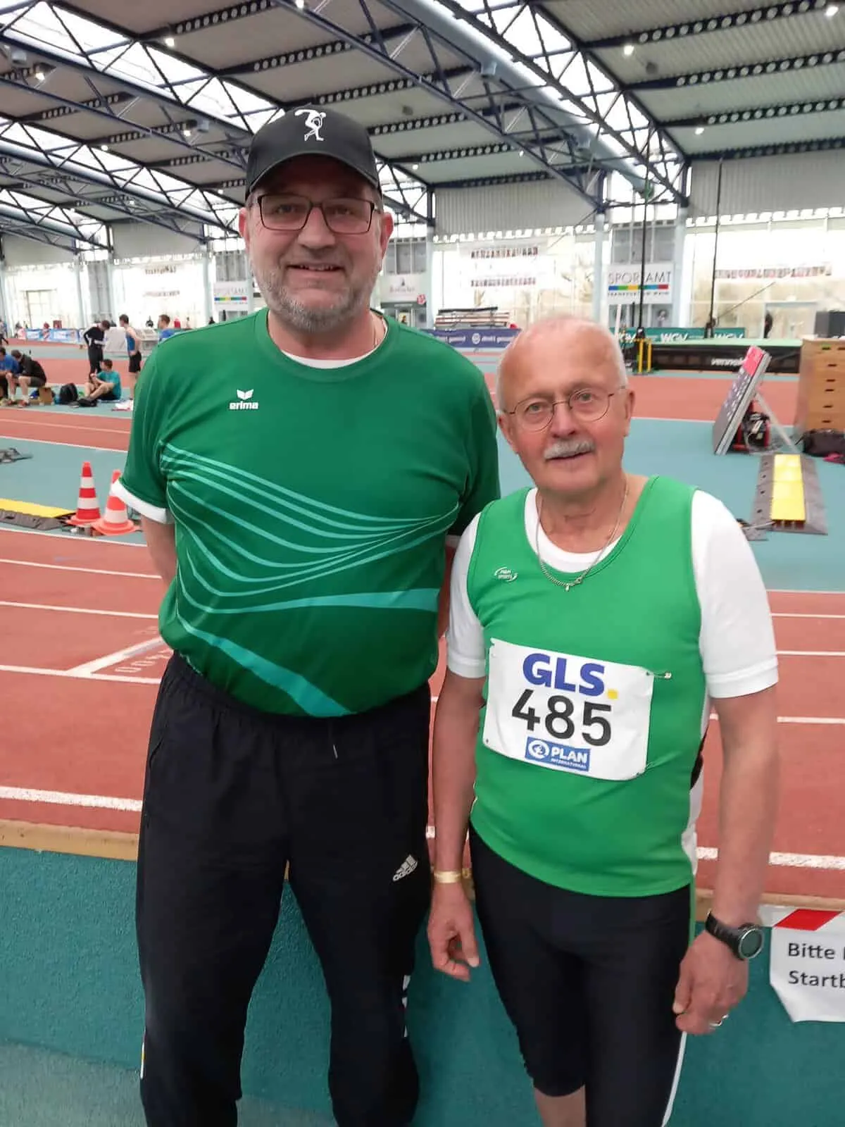 Bei seinem 1. Start für LG wartete Rainer Werking gleich mit einem DM Titel auf! Für ihn war es allerdings schon der 20zigste, bisher jedoch für den VFB Polch im Rheinland! Bei der Masters DM in Frankfurt stieß er die 5 kg Kugel der M65 in letzten Versuch auf die neue PB von 12,86 m und sicherte sich damit im letzten Moment den Titel. Dabei war er ebenso wie Heiner Velt in der M75 nicht ganz fit. Als 10. des 60m-Laufes und 6. im Weitsprung war der auch nicht so ganz zufrieden, was am 2. Tag mit Platz 2 im Hochsprung mit 1.24 m dann aber komplett anders war.
