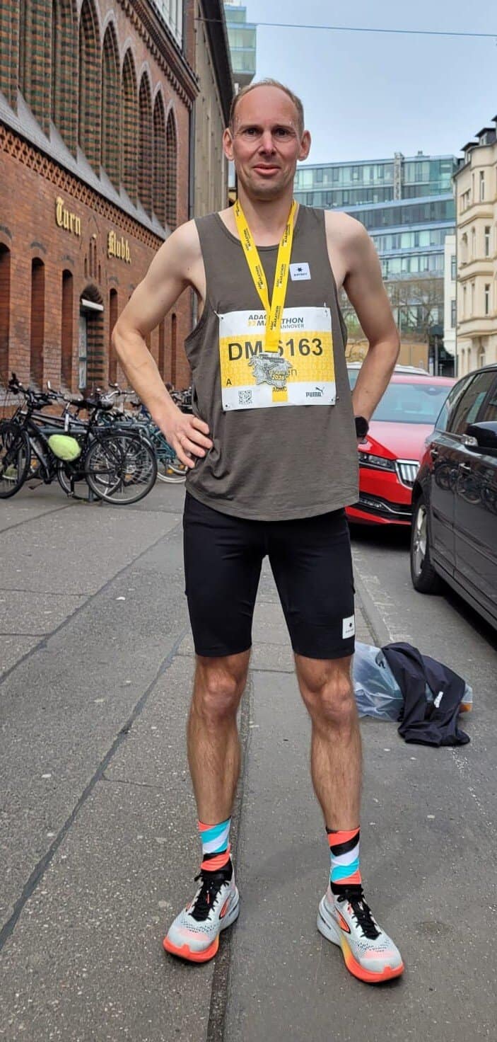 Sören Buss setzte sein Vorhaben der neuen Bestzeit voll geglückt in die Tat um. Als 104. unter 4.815 Startern beim Hannover-Marathon steigerte er seine bisherige Bestzeit von 2:41.30 um 3 1/2 Min. und hat jetzt 2:37:56 Std. vorzuweisen – und das kurz vor dem 39. Geburtstag. Tolle Leistung, herzlichen Glückwunsch.
