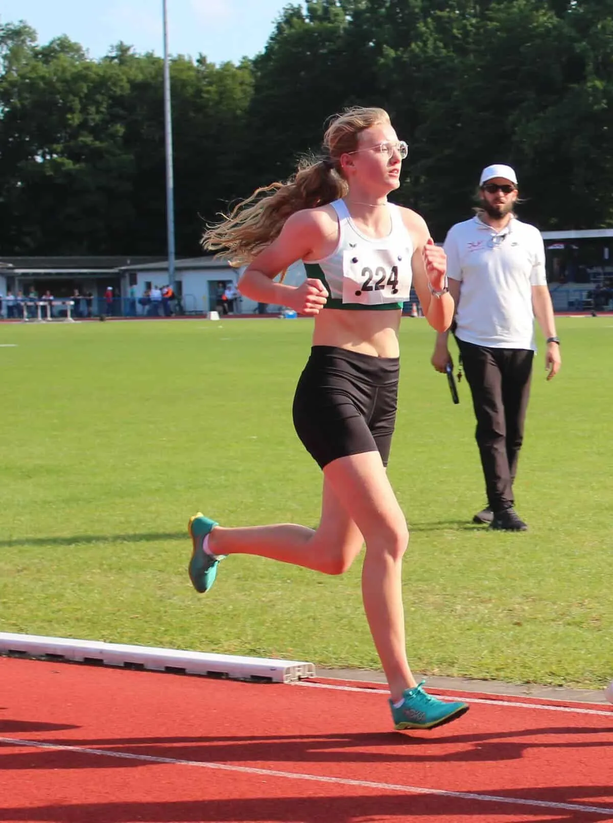 Sophie Suermann hatte schon beim “Ausprobieren” der 1.500 Hindernisstrecke im Mai in Zeven überrascht. Holte sich den Landesmeistertitel, verbesserte den Kreisrekord von Milena Dillmann um die Winzigkeit von 1/100 Sek. auf 5:25.51 Min. und unterbot die DM-Norm gleich um fast 10 Sek. Nächste Überraschung: Damit lag sie vor der DM sogar auf Platz 2 der Meldeliste, fast zeitgleich mit der 3.