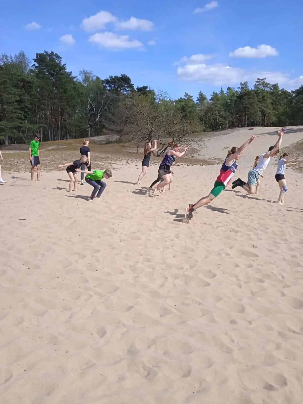 Bei 25 Grad ging es nachmittags in die Verdener Dünen – leider ohne See oder Meer. Anschließend Hallenbad und abends Pizza als 2.Abendbrot.